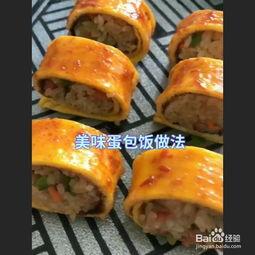 5. 包裹米饭:将炒好的米饭放在蛋皮上,撒上炒好的配料,卷起来,切成小段。